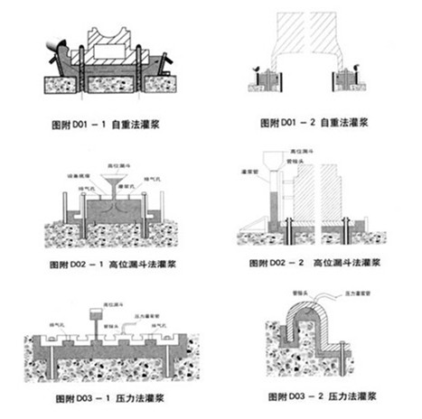 灌浆料自流性能好,灌浆方式可分为3种;“自重法灌浆”、“ 高位漏斗法灌浆”、“ 压力法灌浆”,确定选用哪种灌浆方法应先确定自己的工程现况而定。