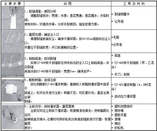 该机具不需使用空压机、手压泵等配套设备,勿需用电,操作简便,施工快捷,可在水平、垂直等任何方向安设使用,在一些特殊作业面(无电源、有障碍、高空、野外等)有突出的侉性注浆时,根据裂缝长度可数个或数十个使用,不断注入树脂,并可用肉眼直接观察和确认注入情况,质量易于保证。
