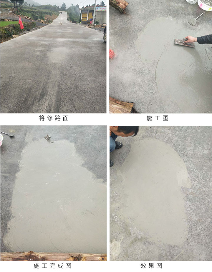施工时无需复杂的施工机械和技术要求,无需长时间的封闭交通,施工后24小时可开放交通;无需对病害部位开挖,可节省大量的施工费、材料费和养护时间,有效的延缓道路病害的扩散和蔓延,延长道路使用寿命;而且修补后与原水泥混凝土路面颜色接近,有较好的美观度。