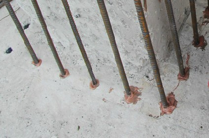7.外观检查固化是否正常。重要部位的植筋需进行现场抗拔试验,检验其锚固力是否满足设计要求;合格后方可进行下一道工序的施工。